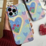 قاب موبایل آیفون نقاشی کودک درون قلبی آبی بنفش محافظ لنزدار ( 3005 )