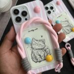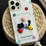 قاب موبایل آیفون گربه خوش قلب توپی جاکارتی بنددار