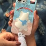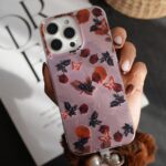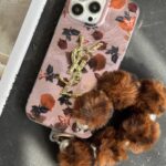 قاب موبایل آیفون دم روباهی پروانه گل سرخ + بندست پشمی