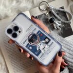 قاب موبایل آیفون آرمسترانگ کره ماه فضایی آبی محافظ لنزدار