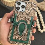 قاب موبایل آیفون پوست ماری پایتون جاکارتی و بند بلند