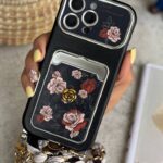 قاب موبایل آیفون گل رزا نرا جاکارتی دار + بندست اسکارف