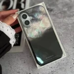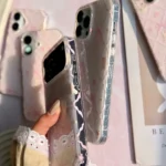 قاب موبایل ( آیفون ) گل مستر پیس سفید نقره ای + بندست مخملی