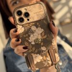 قاب موبایل ( آیفون ) گل رز فلورا قهوه ای + بندست چرمی