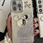 قاب موبایل ( آیفون – سامسونگ ) میکی اسکوییکی داگ آیینه ای نگین دار + بندست