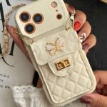قاب موبایل ( آیفون – سامسونگ ) بند زنجیری بلند بالشتی پروانه ای جاکارتی دار