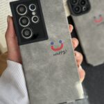 قاب موبایل سامسونگ چرم و جیر طوسی اسمایل محافظ لنزدار