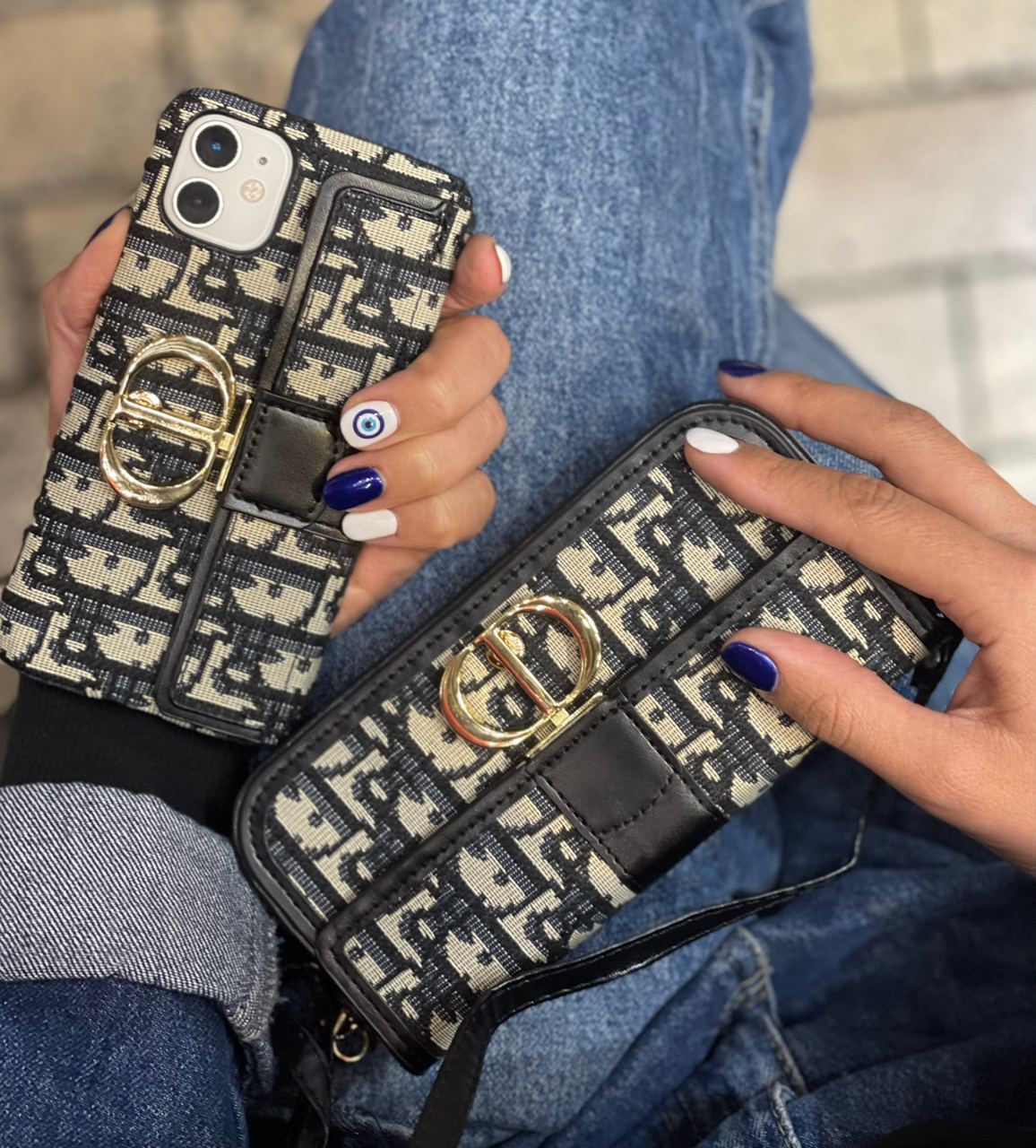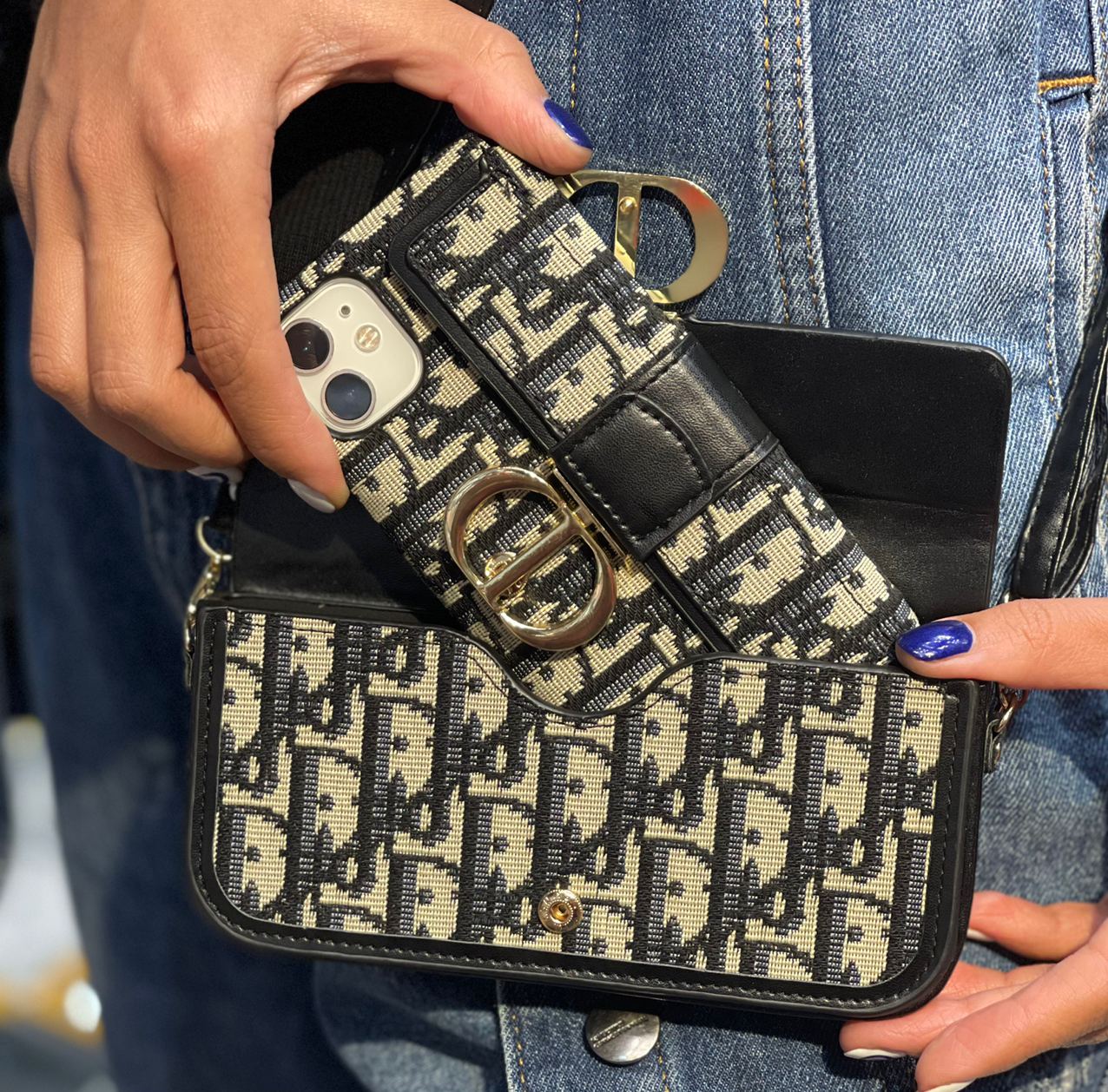 قاب موبایل آیفون دیور چرم و پارچه ای قفل فلزی جاکارتی