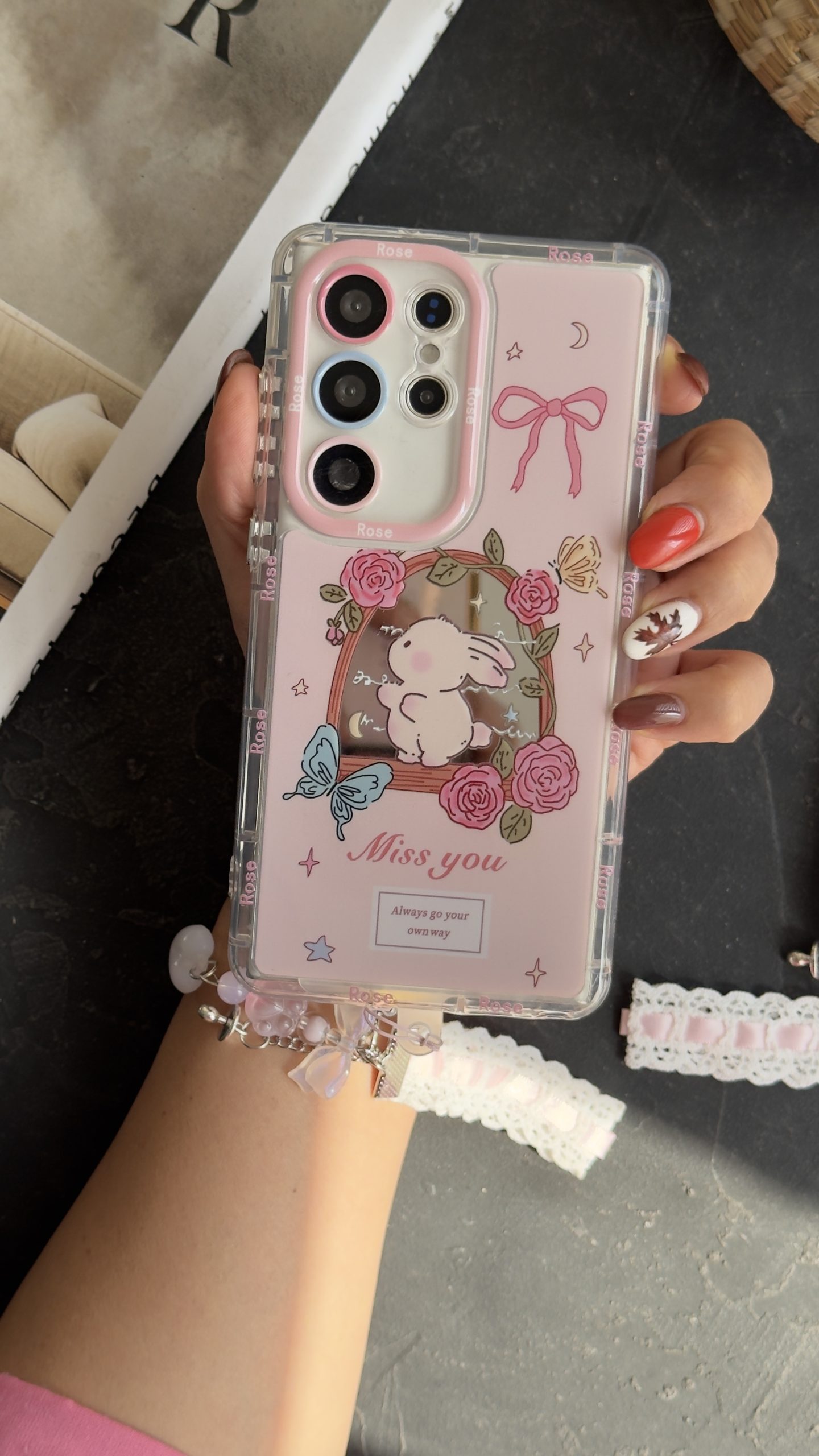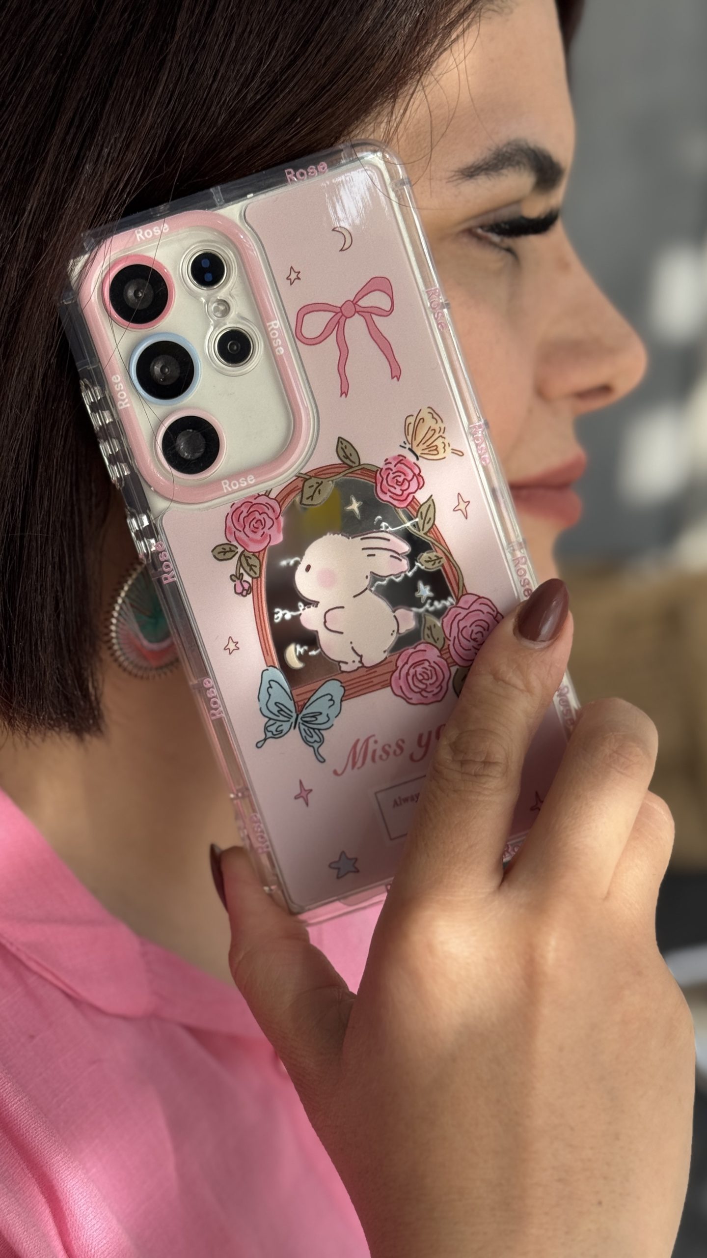 اگر به دنبال یک قاب موبایل فانتزی و خاص هستید که هم از گوشی‌تان محافظت کند و هم جلوه‌ای شیرین و دخترانه به آن بدهد موبایل  بهترین انتخاب است. این قاب با طراحی لطیف شامل تصویر یک خرگوش بامزه در میان گل‌های رز و روبان صورتی، حس لطافت و عشق را منتقل می‌کند. نوشته‌ی “Miss You” روی قاب، آن را به انتخابی احساسی و خاص تبدیل کرده است.