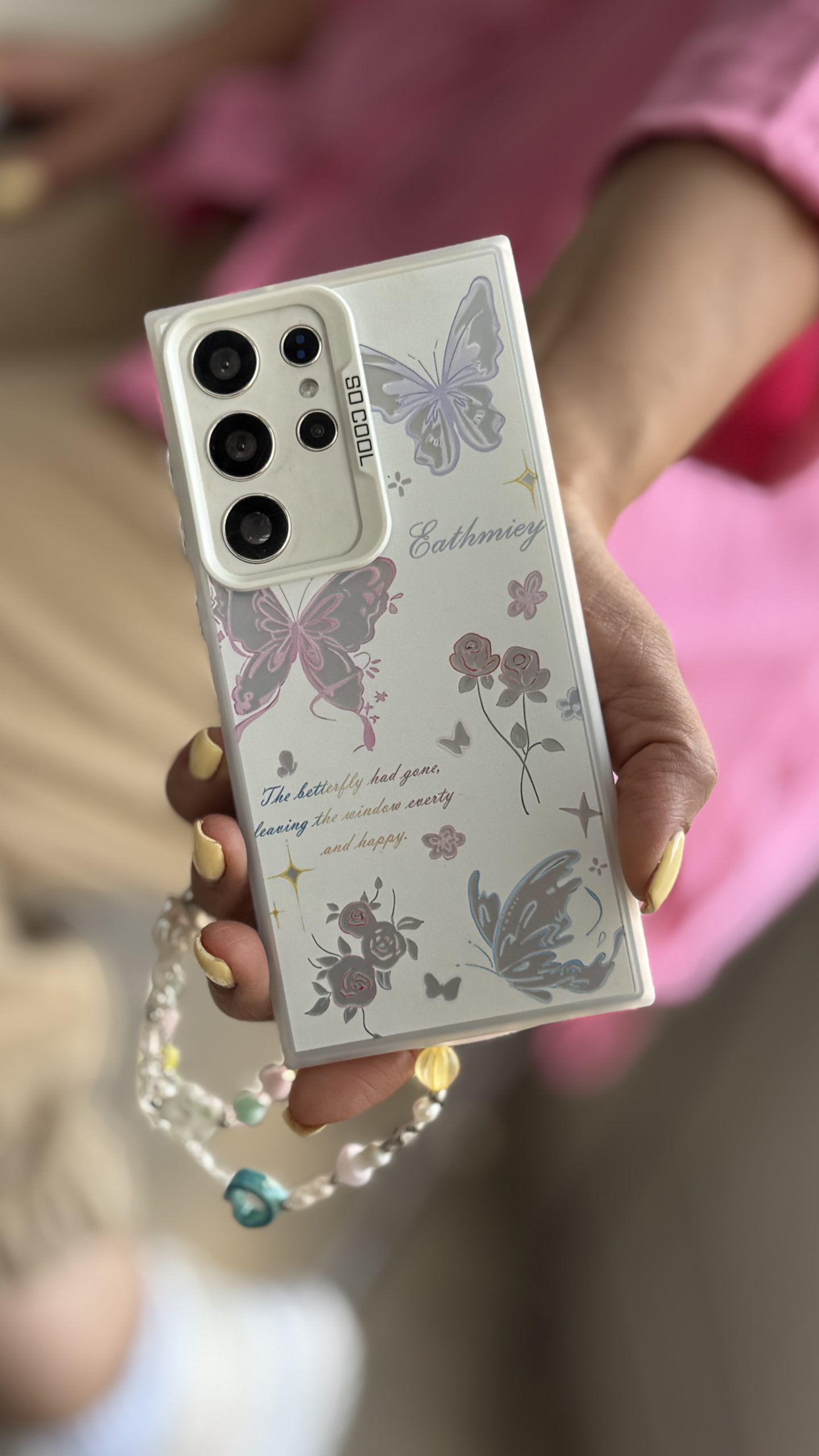 قاب موبایل ( آیفون – سامسونگ ) گل و پروانه لوناریا + بندست