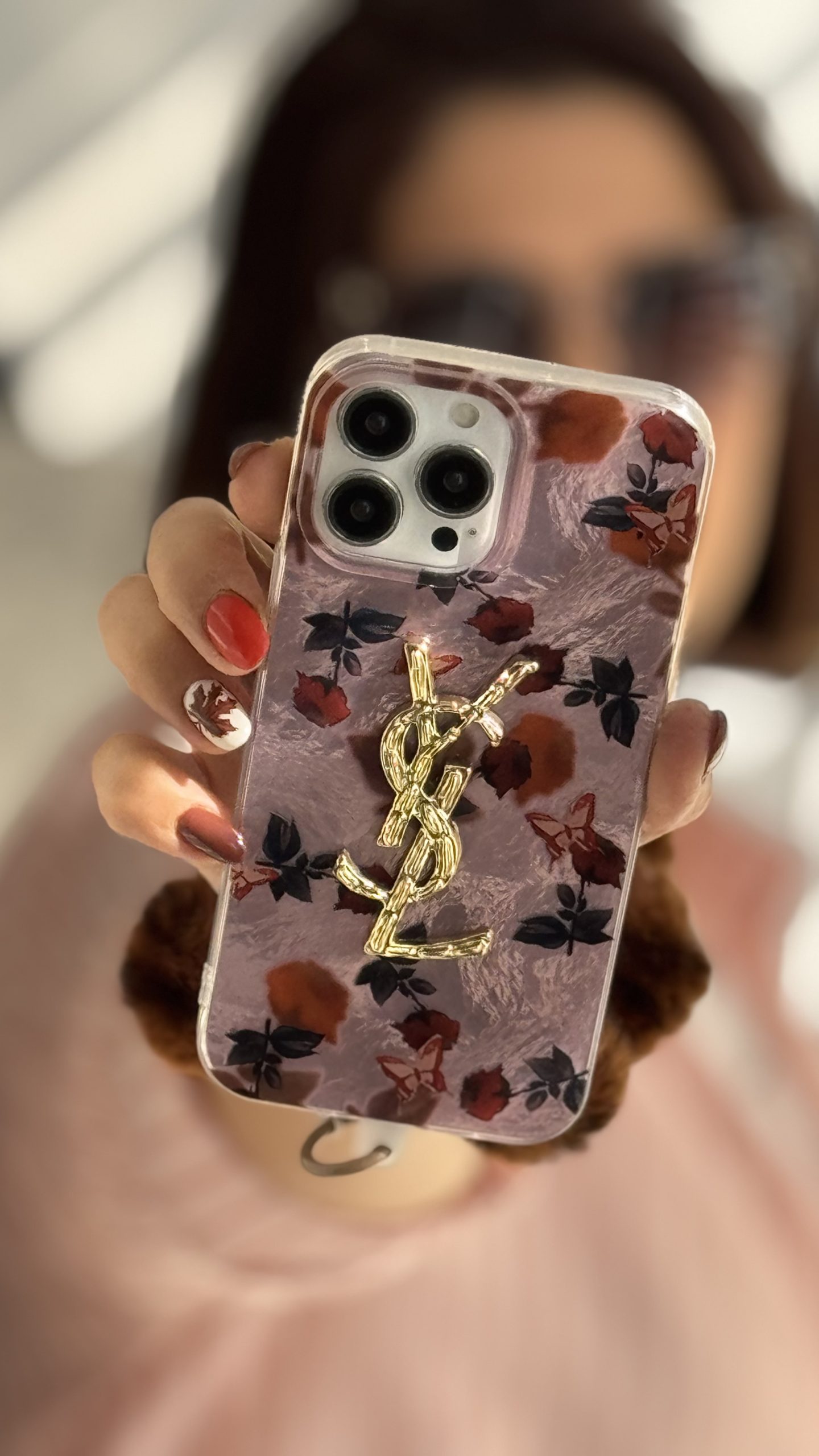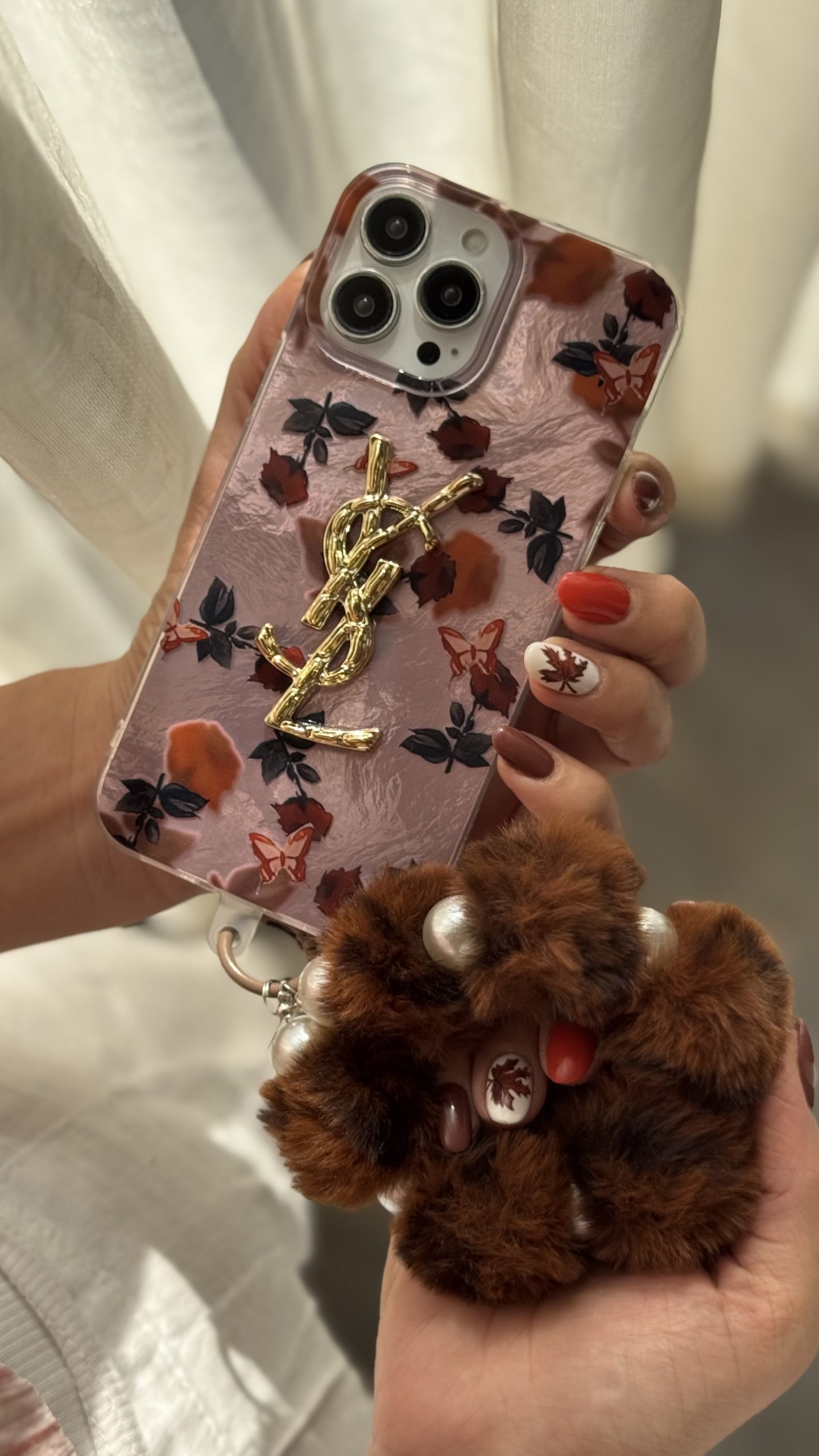 � معرفی محصول: قاب موبایل آیفون سن لورن دم روباهی پروانه گل سرخ بندست پشمی