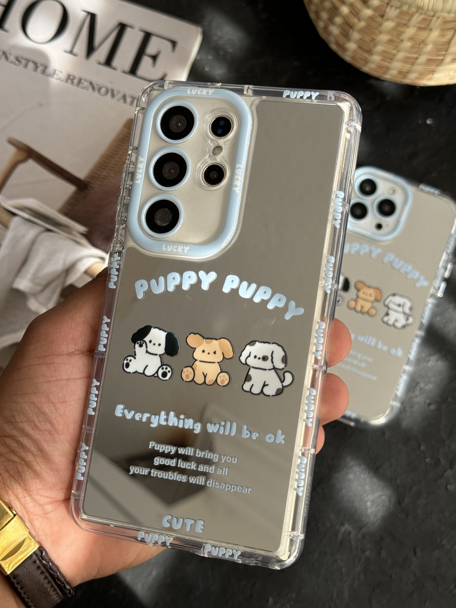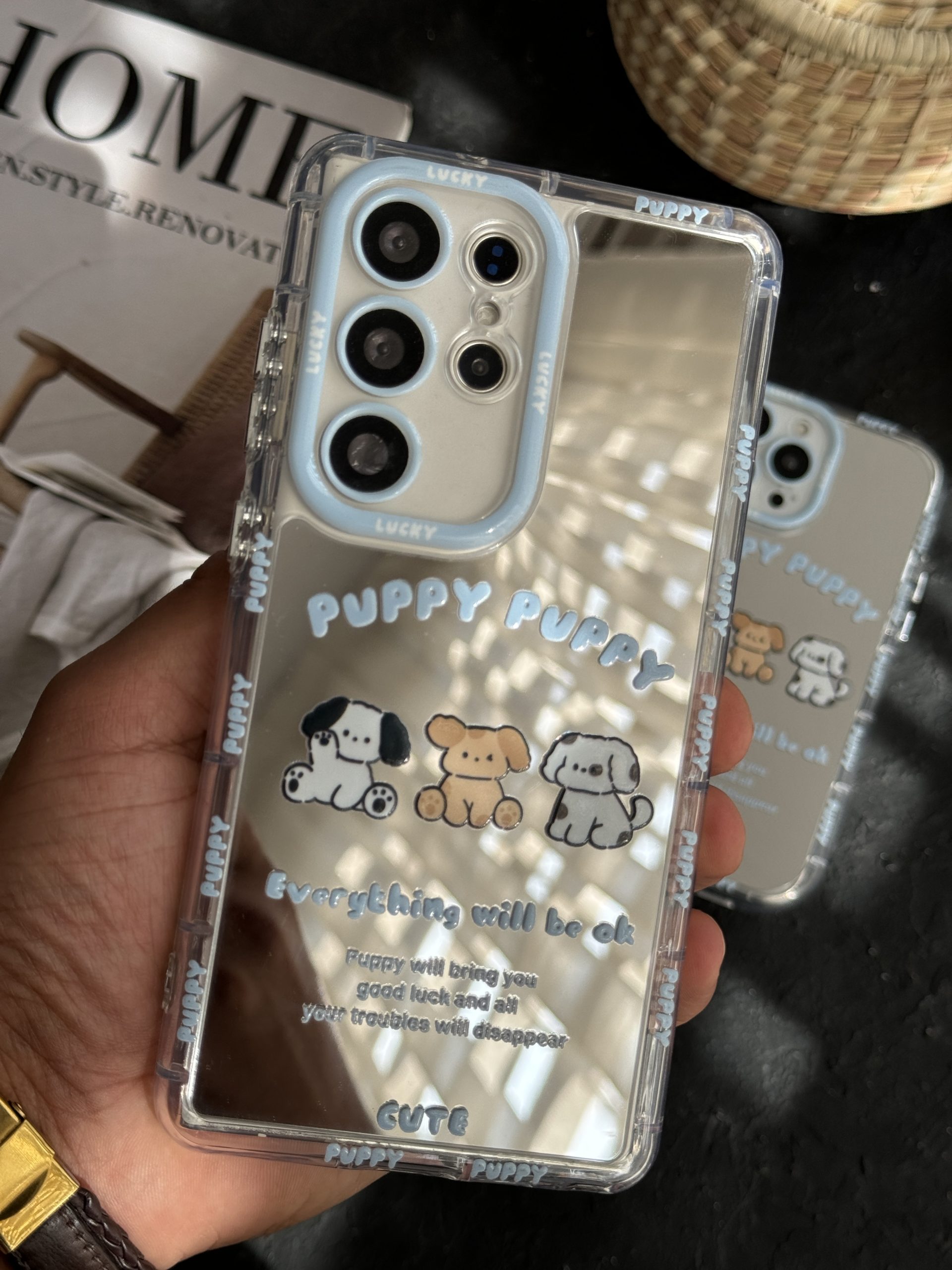 قاب موبایل آیفون سه سگ پاپی پاپی آیینه ای آبی