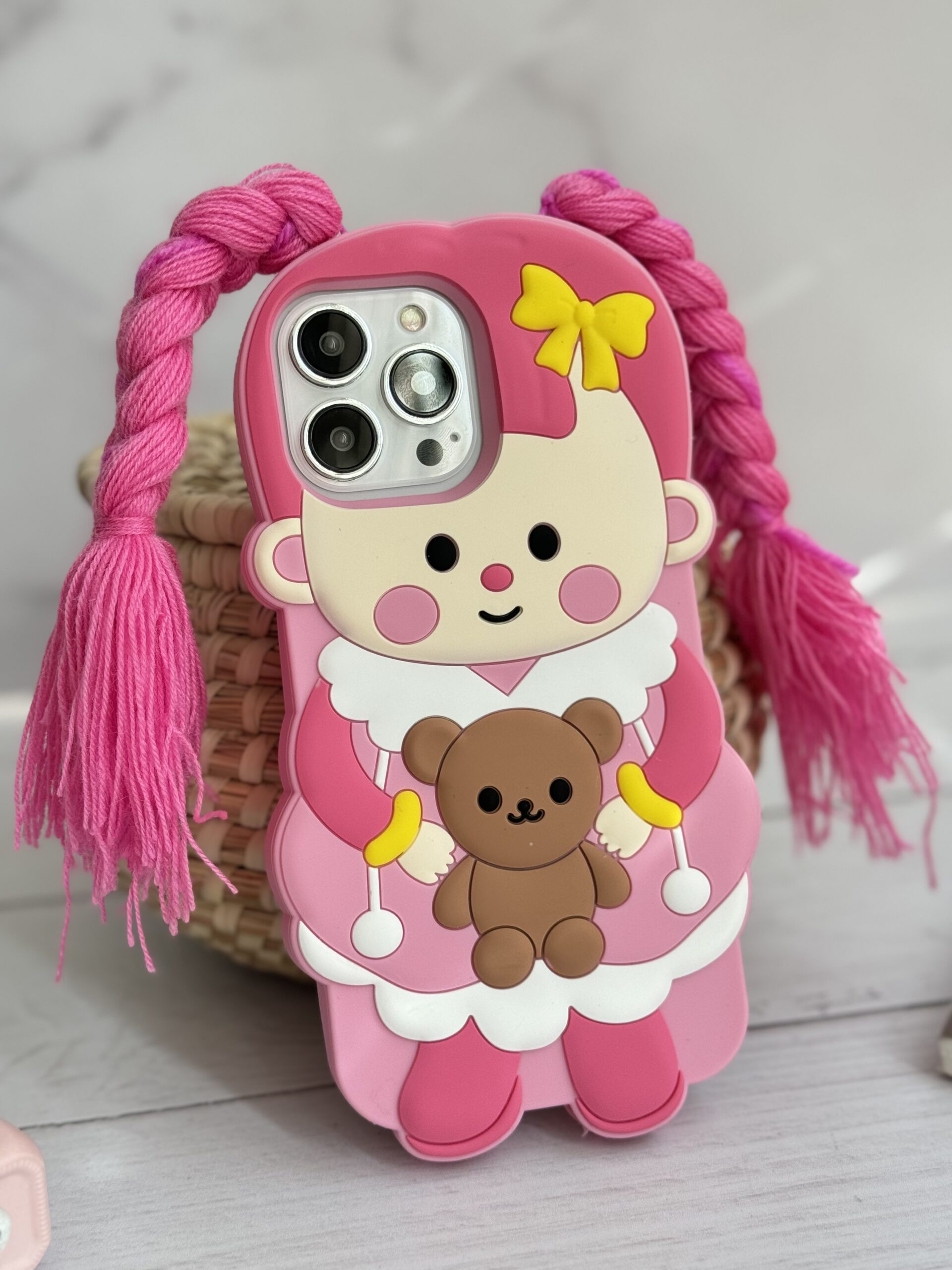 قاب موبایل آیفون عروسک صورتی لونا