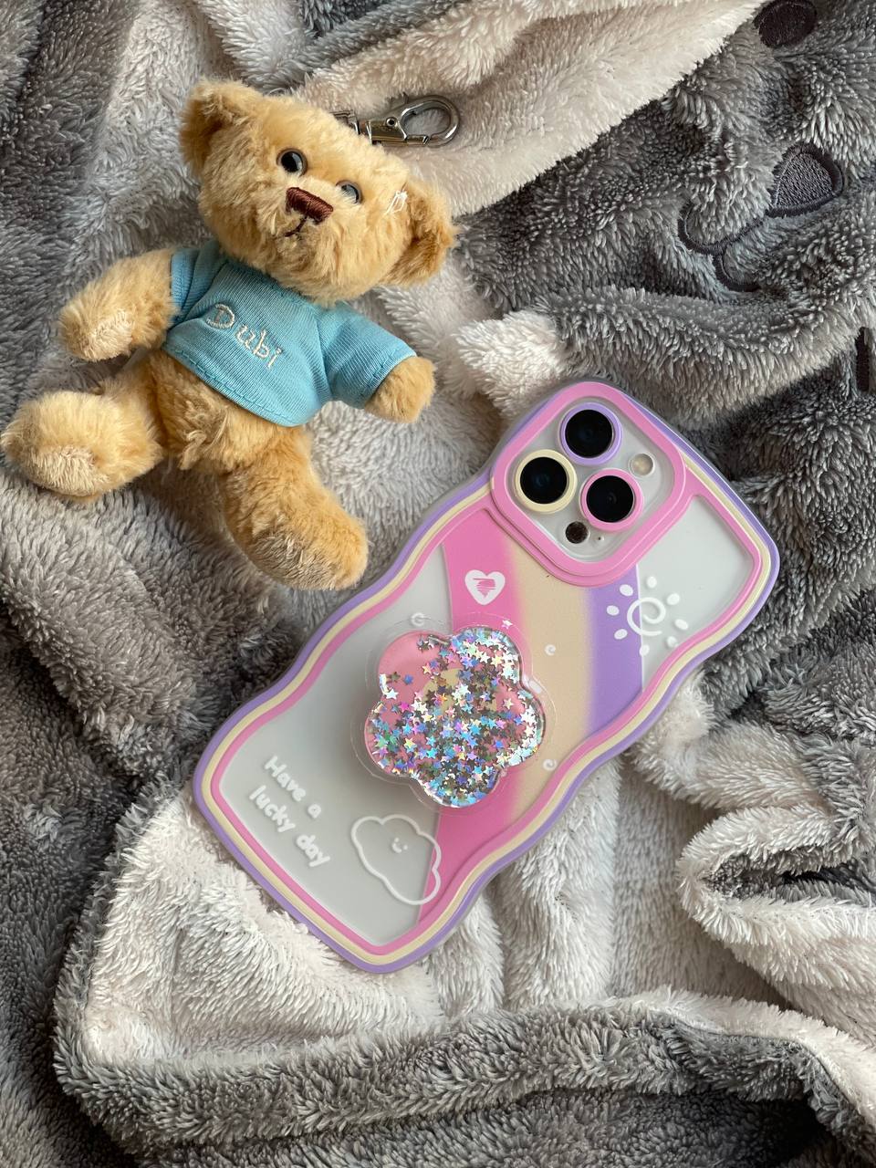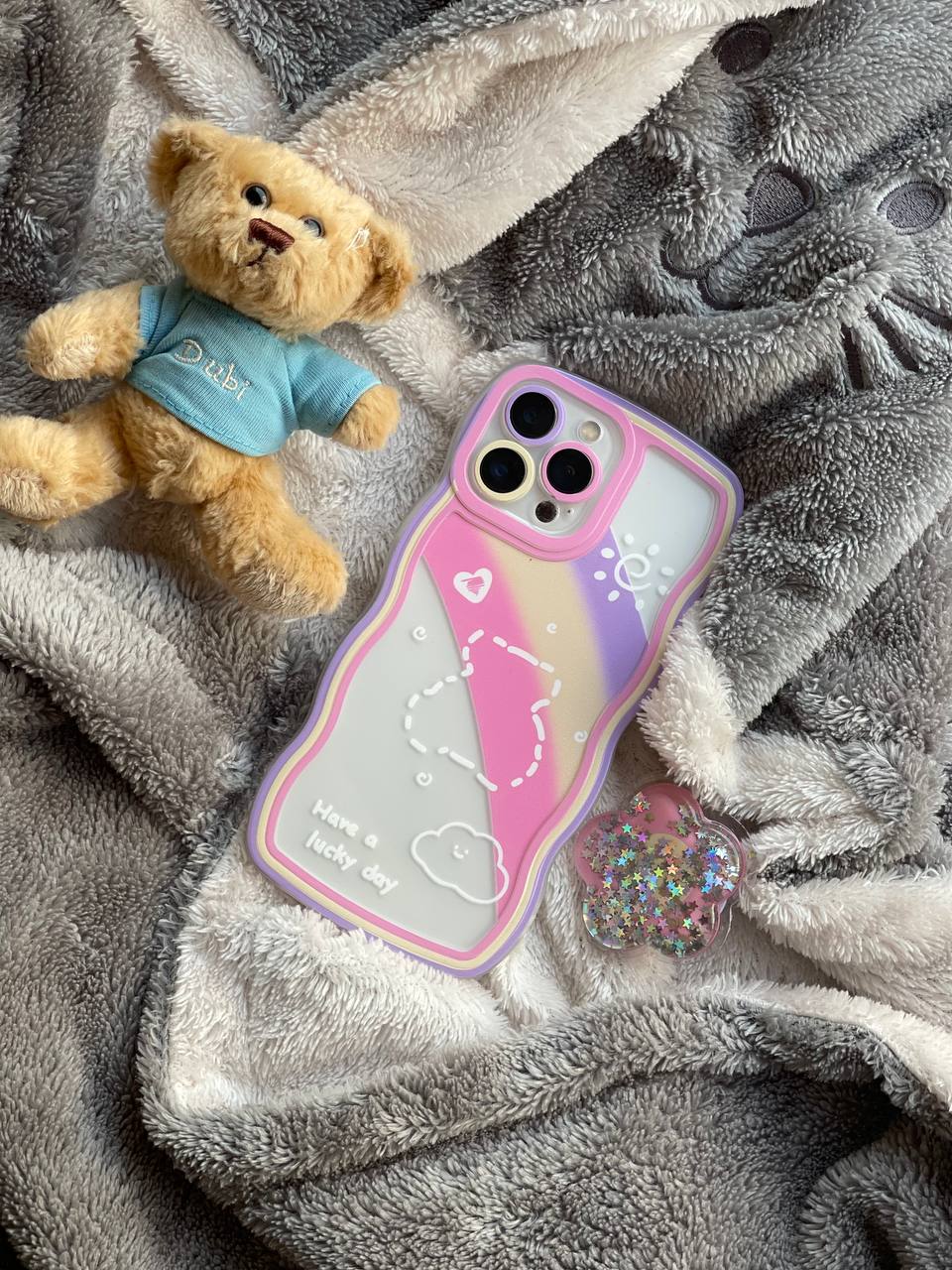 قاب موبایل آیفون ماه و ستاره و رنگین کمان خرسی + پاپ سوکت ستاره متحرک