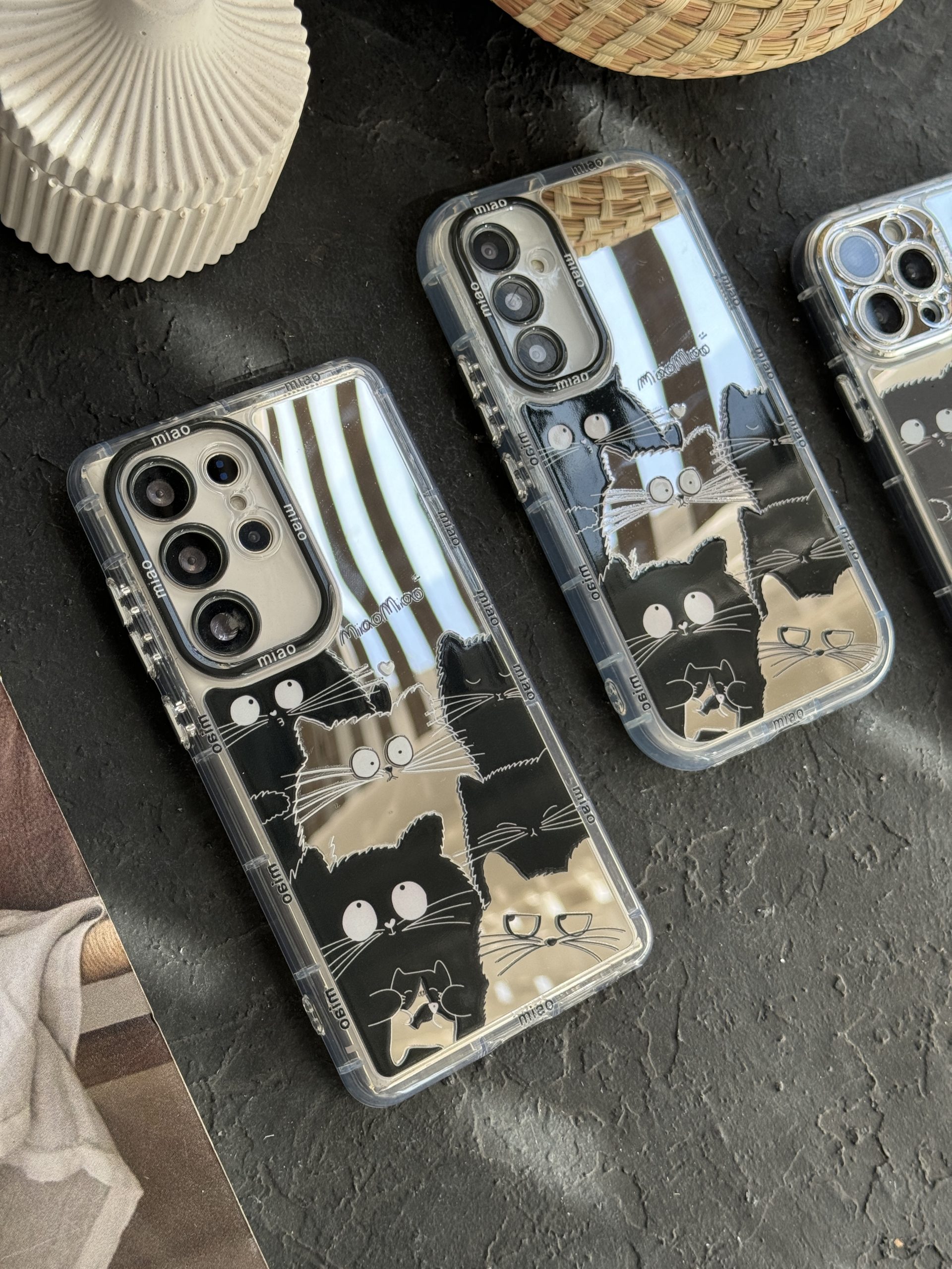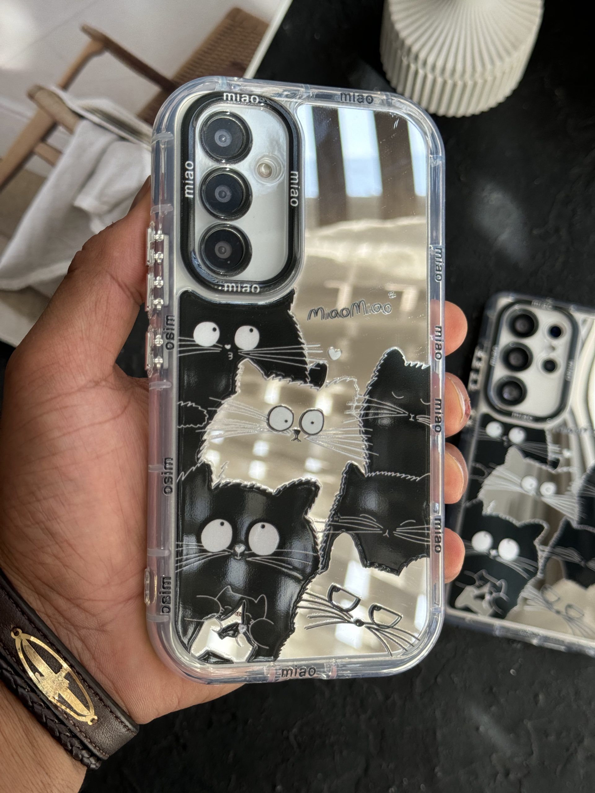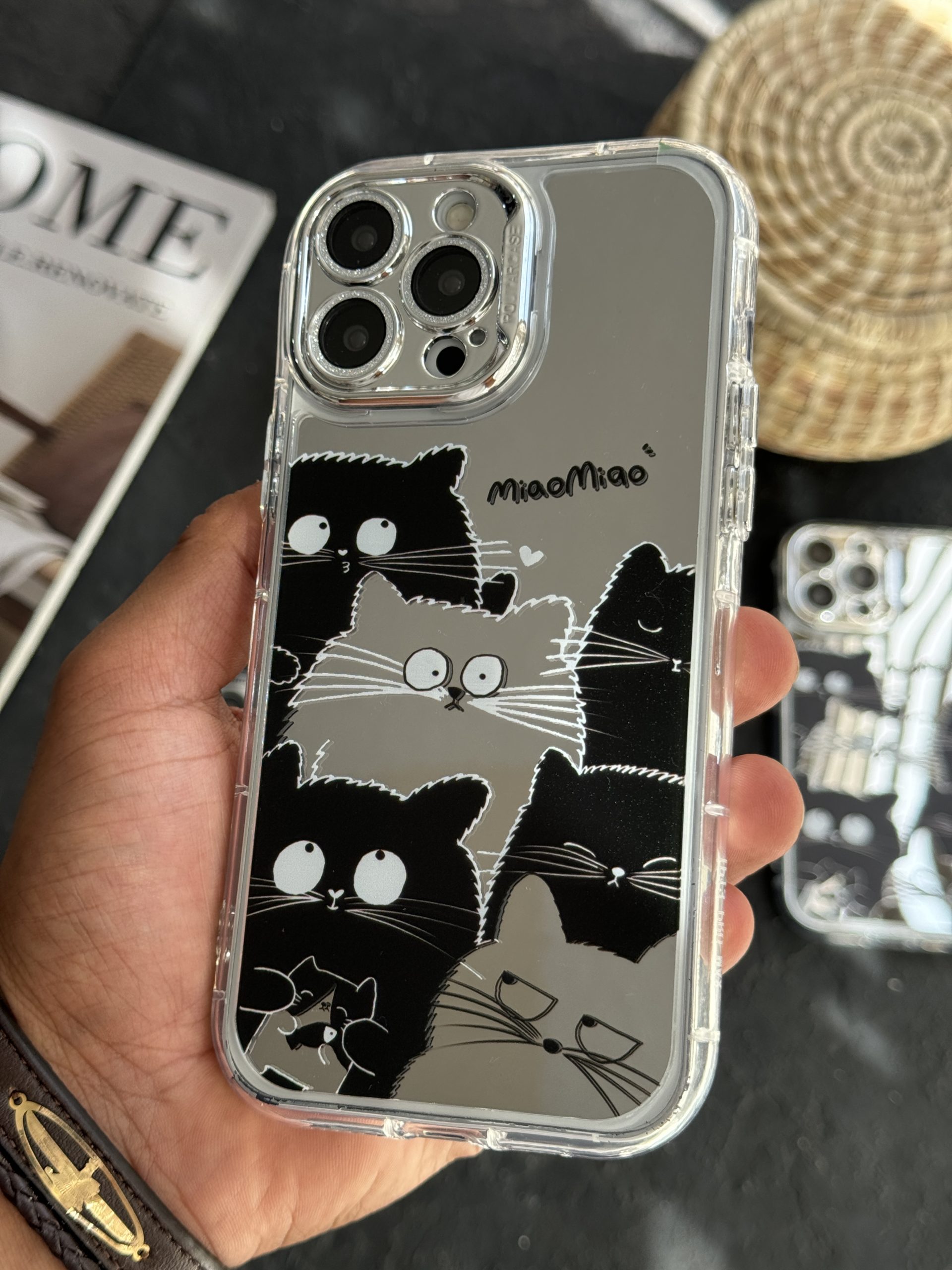 قاب موبایل آیفون گربه بلک اند وایت آیینه ای
