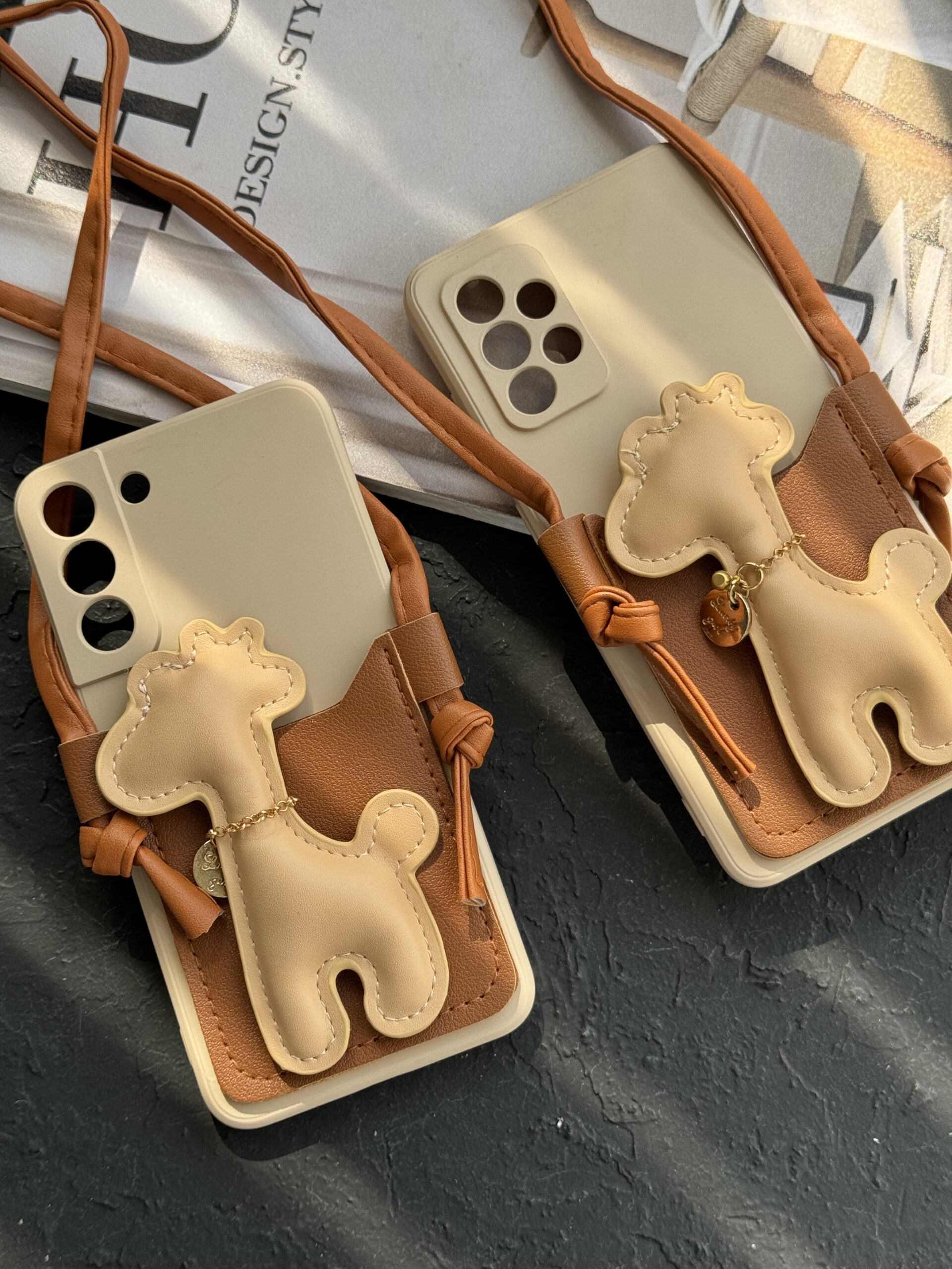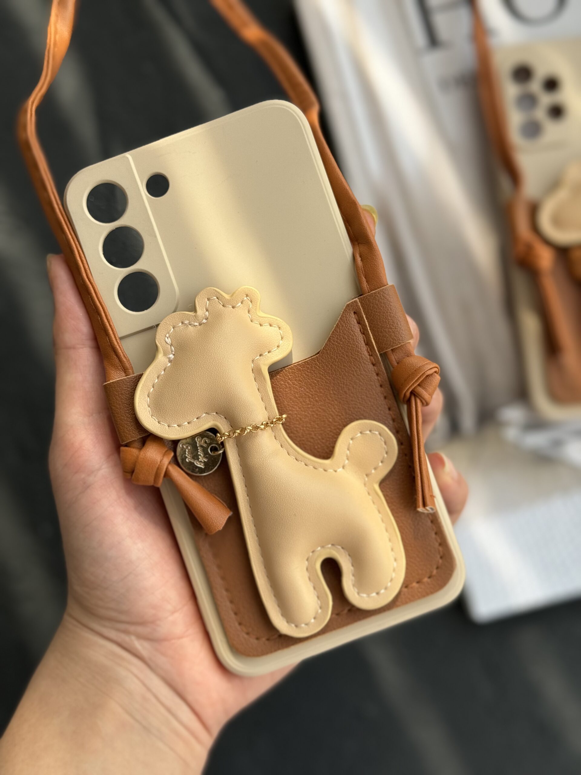 قاب موبایل سامسونگ زرافه مینیمال چرمی جاکارتی و آویز بلند محافظ لنزدار