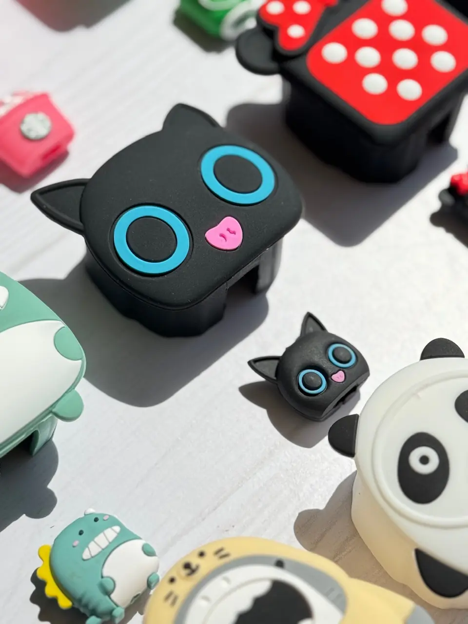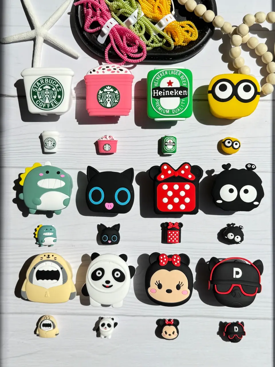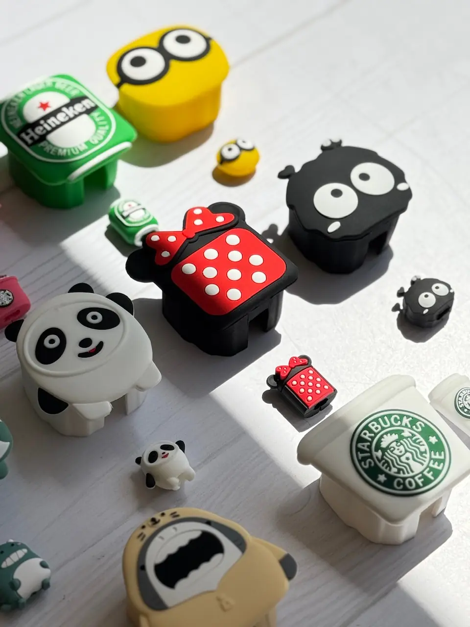 5-بچه دایناسور ,1-استارباکس سفید ,10-پاندا ,11-مینی موس صورت ,4-مینیون ,3-هانیکن ,9- کوسه ,2-استارباکس صورتی ,12-بول داگ ,8-هپل شاخ دار ,7- مینی موس خال خالی ,6-گربه چشم تیله ای |